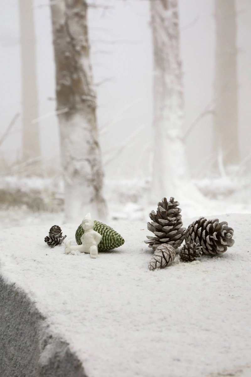 Christmas Tales-kollektionen är skapad med känsla av julmagi. Figurerna är inspirerade av gamla legender och var och en berättar en historia med inslag från den vackra nordiska naturen. Kottarna och vedträna är avgjutna från riktiga, vilket skapar en vacker kontrast till de stilistiska figurerna.Gossen som vilar mot kotten påminner om oss något viktigt i livet, att ta vara på stunden och njuta av stillheten.