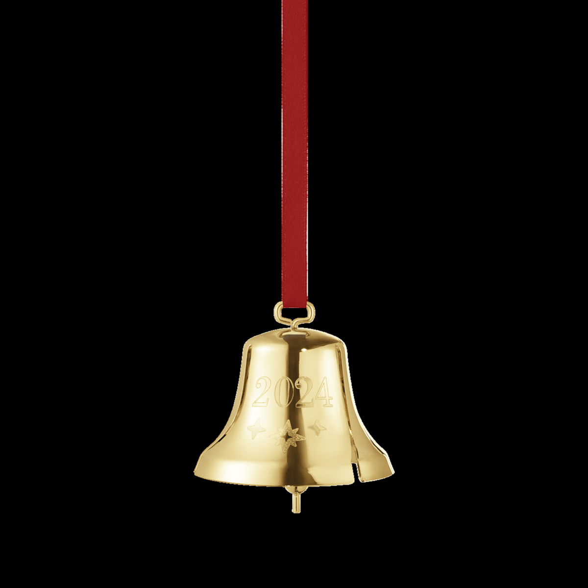 Denna gnistrande, guldpläterade klocka från 2024 års julkollektion är en vacker och stämningsfull julprydnad. Julklockan är designad av Georg Jensens mångåriga samarbetspartner Sanne Lund Traberg och är en vacker förnyelse av den traditionella designen med fina detaljer och ett elegant rött band.