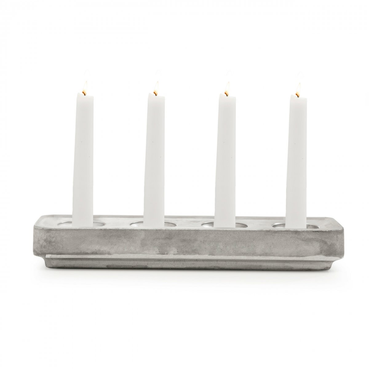 En avlång stumpastake från Born in Sweden med plats för 4 ljus 30x8,5x4cm 100% återvunnen aluminium