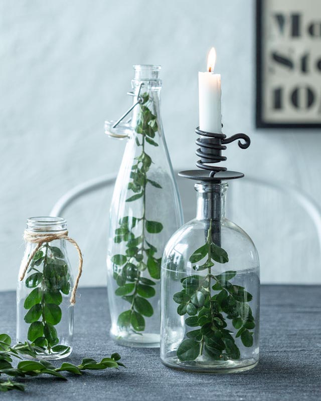 Svart smider som passar i en vacker flaska. Bara att trycka ned i flaskan och sätta i överblivna stearinljus. Givetvis passar en stumpastake lika bra med hela ljus också.