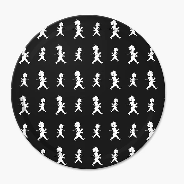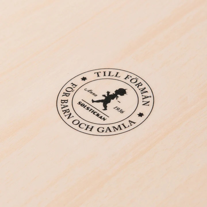 Rund trevlig bricka med repeterande mönster av den klassiska Solstickepojken skapad av Einar Nerman 1936. Lika trevlig som serveringsbricka som dekoration i kök/matsal. Brickan är tillverkad i Sverige.