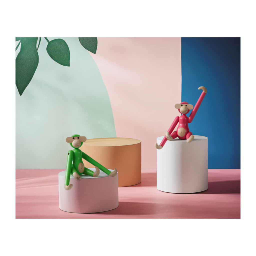 Miniversionen i bokträ i färgen vintagegrön är hämtad från en originaltapet i arkiven, som Kay Bojesen designade till barnkammaren i slutet av 1940-talet. Den härliga retro-färgen passar perfekt till den designklassiker som Apan är.