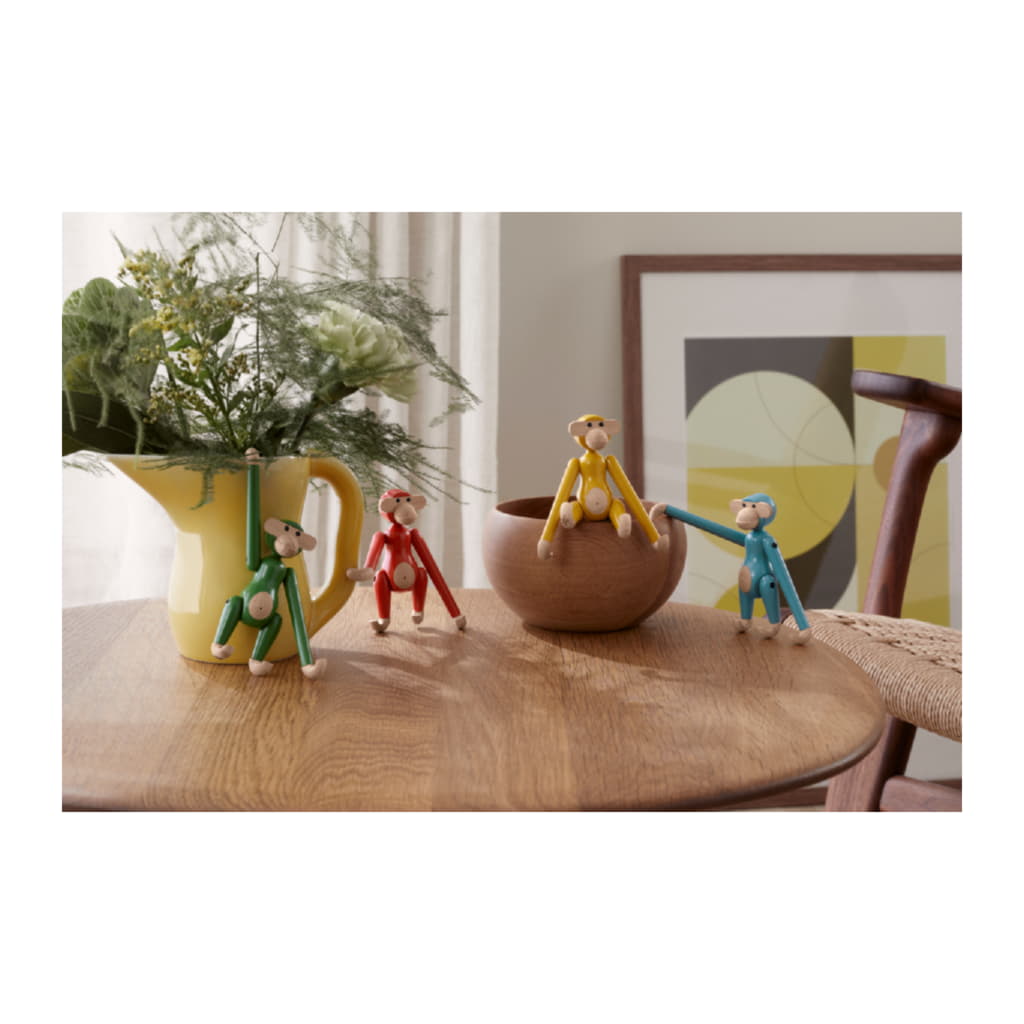 Miniversionen i bokträ i färgen vintagerosa är hämtad från en originaltapet i arkiven, som Kay Bojesen designade till barnkammaren i slutet av 1940-talet. Den härliga rosa retro-färgen passar perfekt till den designklassiker som Apan är.