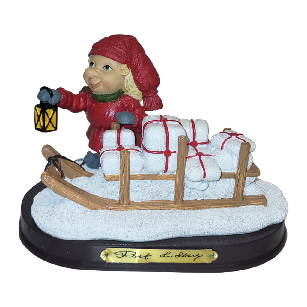 Lidberg Tomteflicka med Kälke höjd 9 cm och 13 cm bred