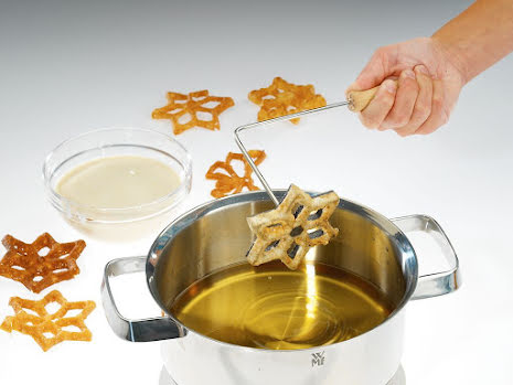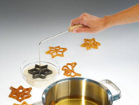 Klassiskt struvjärn med långt träskaft för enkel och säker användning. Kommer med tre olika struvformer. Blomma, Stjärna och fjäril. Receptbok och anvisningar på  'Hur du använder struvjärn' (på engelska) medföljer.