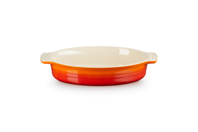 Detta ovala fat med öron är mycket användbar både till servering och att laga mat i ugn. Tåligt stengods i den klassiska färgen Vulkan.