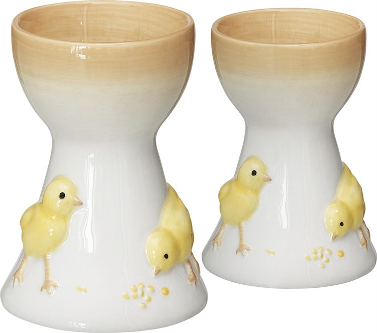 Äggkopparna är dekorerade i nedre del med små söta kycklingar.