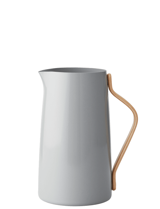 Vacker grå stålkanna från Stelton i klassiska Emma-serien. Rymmer 2 liter tillverkad i rostfritt stål med fint handtag i trä.