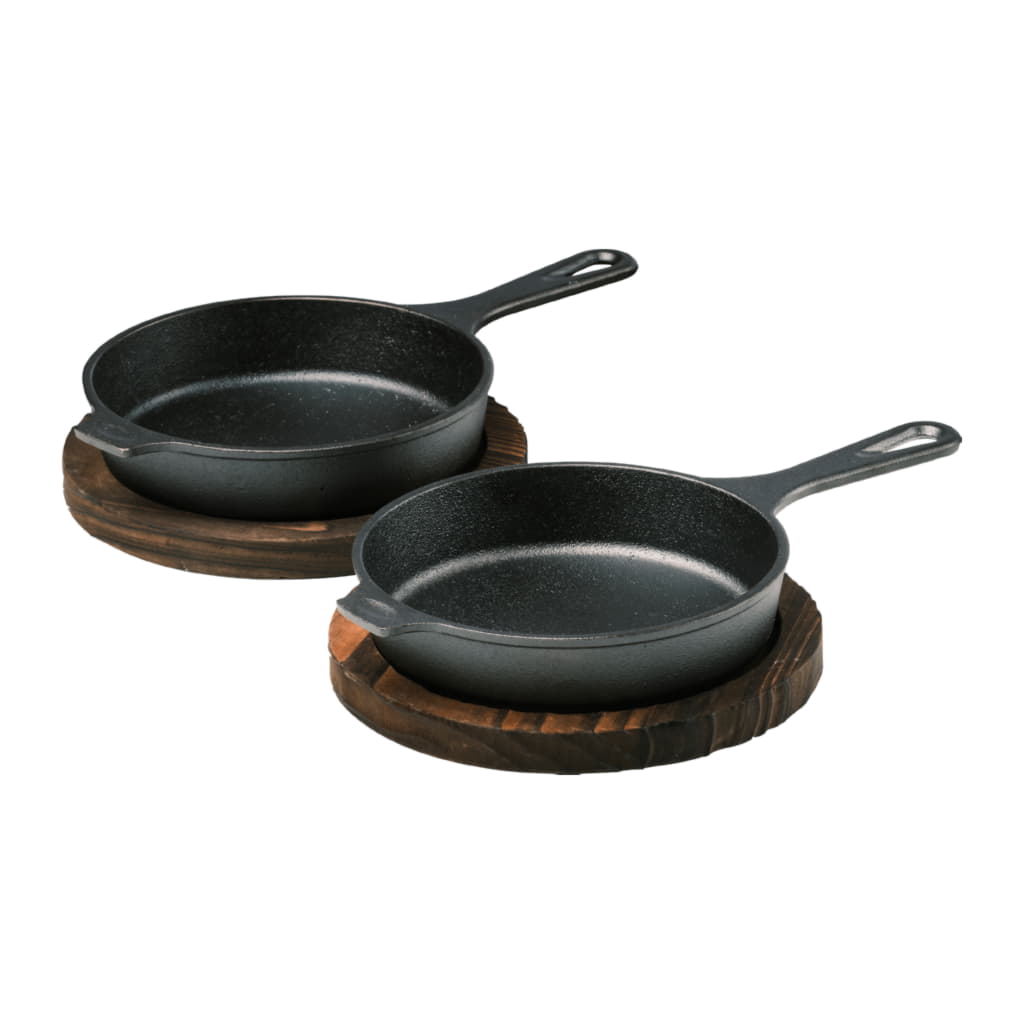 Trevlig portionspanna i gjutjärn med underlägg, 2-pack