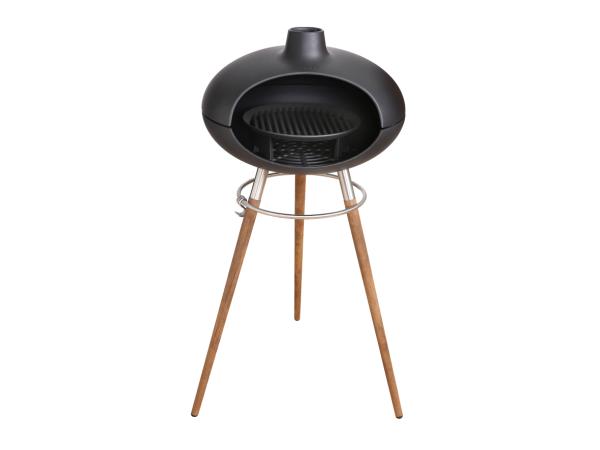 Grill FORNO II gjutjärn Morsø inkl gjutjärnsinsats, grillgaller och grepp. Material: Gjutjärn och teak Färg: Svart Dia: 55 cm × H: 111 cm Vikt: 58 kg