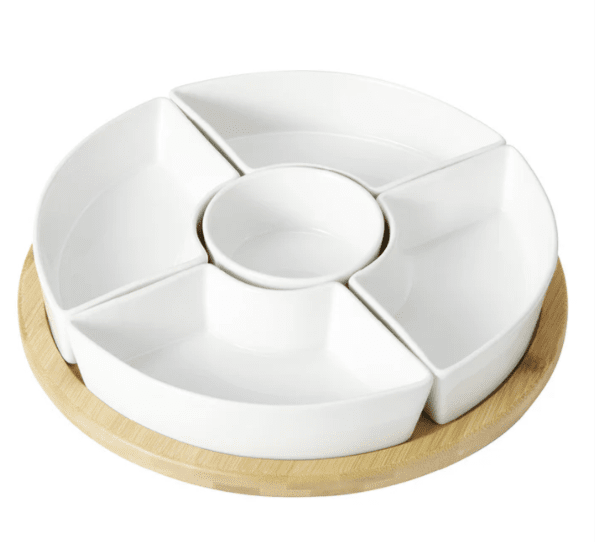 Dorre Samara Skålset 6 delar, 5 skålar i porslin och roterande Bambubricka 28 cm
