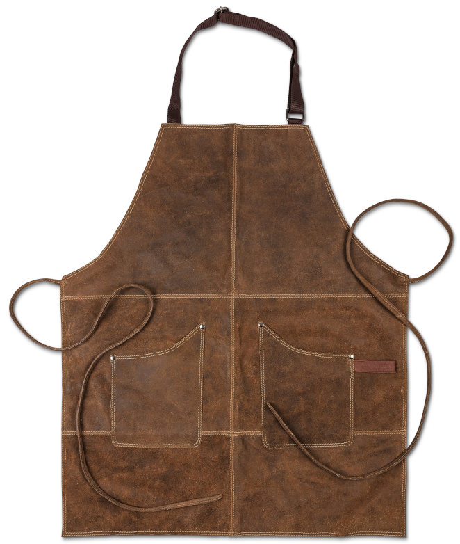 Ett exklusivt förkläde från Scandinavian Home i vintage buffelläder. Förklädet har en justerbar nackrem och är tillverkad av SMETA-certifierat skinn. Det finns även en grillvante i samma material och färg. Storlek: 76 x 64 cm